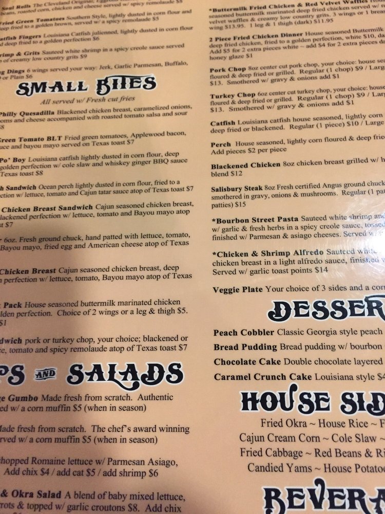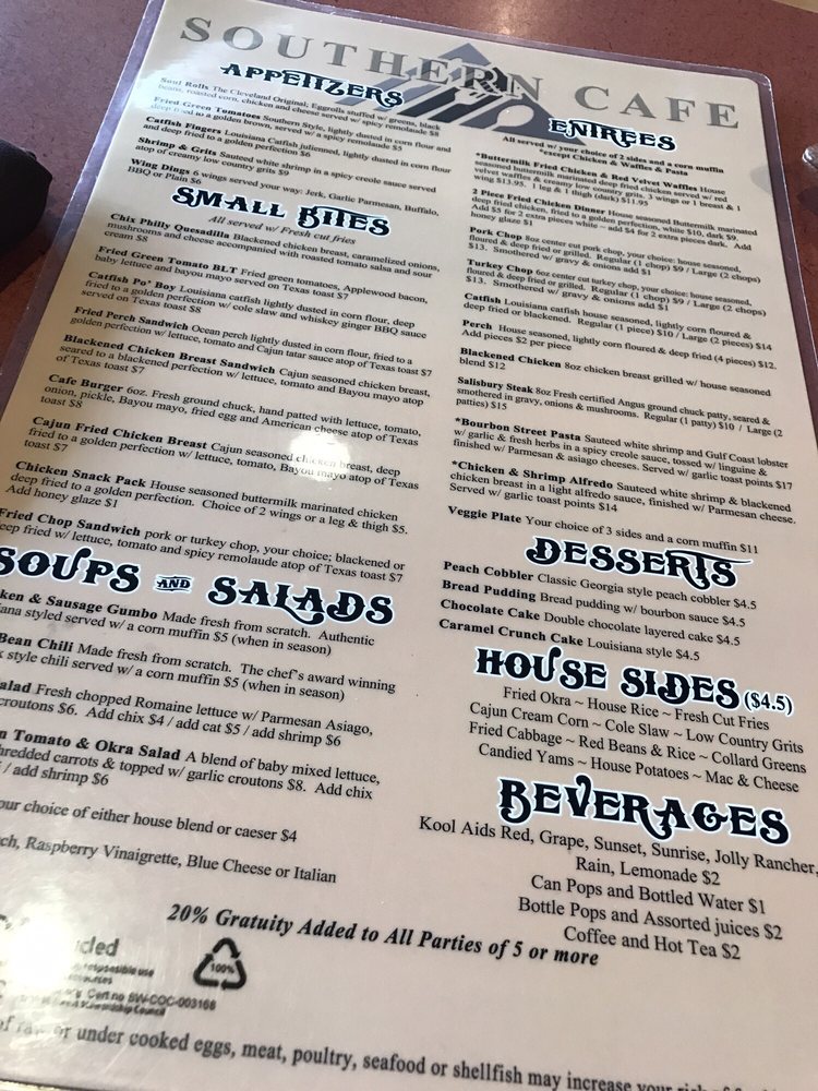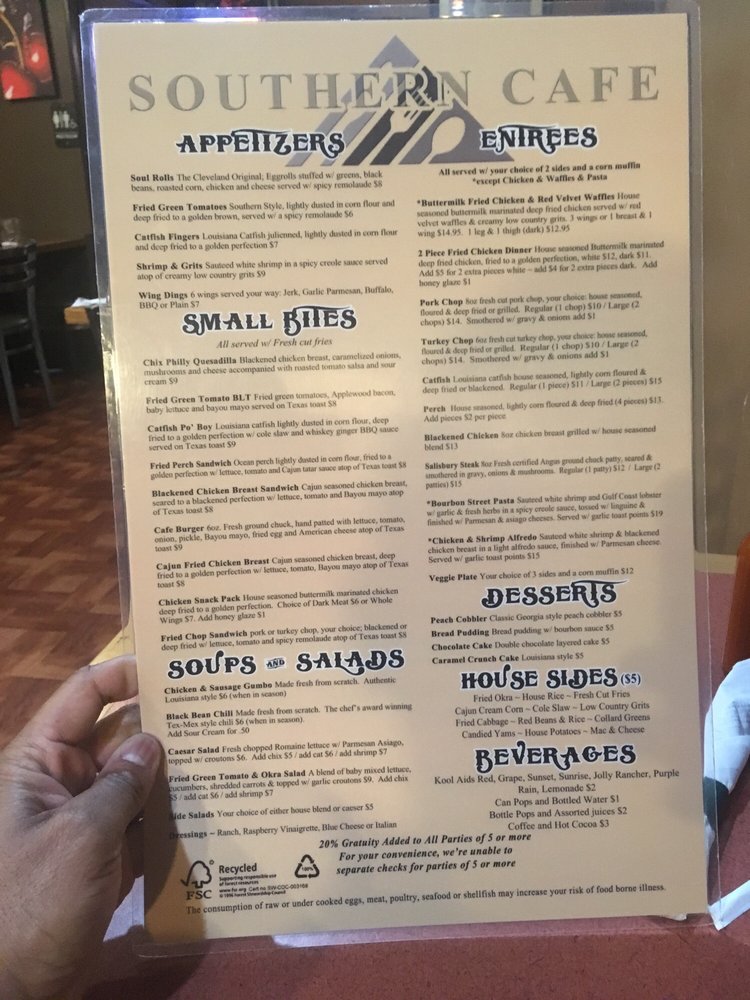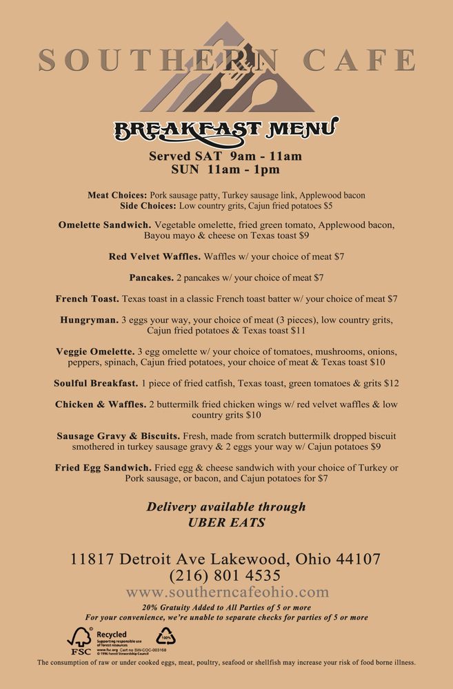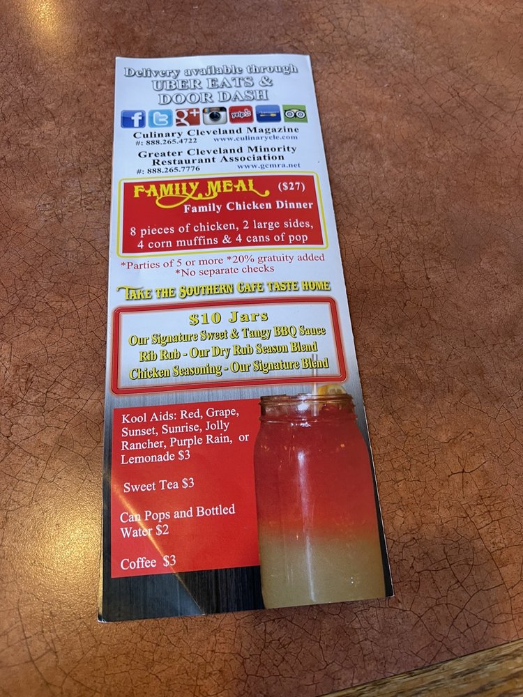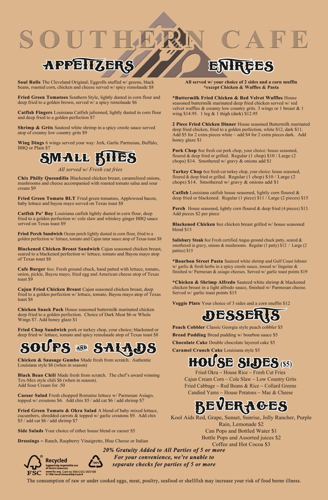Southern Cafe offers a delightful menu filled with soulful Southern breakfast and brunch options. The restaurant provides a range of beverages, including Kool Aid and Can Pops, creating a cozy and welcoming dining experience. The breakfast menu features delectable items like Omelette Sandwich Breakfast, Red Velvet Waffles, and French Toast Breakfast. Appetizers like Soul Rolls and Fried Green Tomatoes showcase the Southern flavors with a unique twist. Reviews highlight the friendly service and tasty dishes, with customers praising the fried okra, catfish, red velvet pancakes, and smothered fried pork chop. Southern Cafe is a hidden gem in Cleveland, offering authentic and delicious Southern cuisine that leaves diners wanting more.